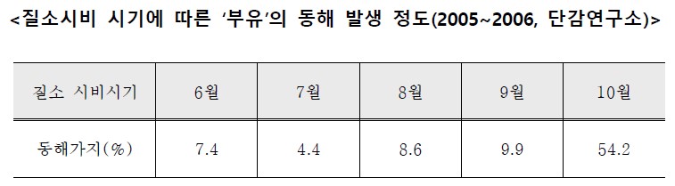 ○ 질소 시비의 시기가 늦으면 동해를 받기 쉬우므로 주의