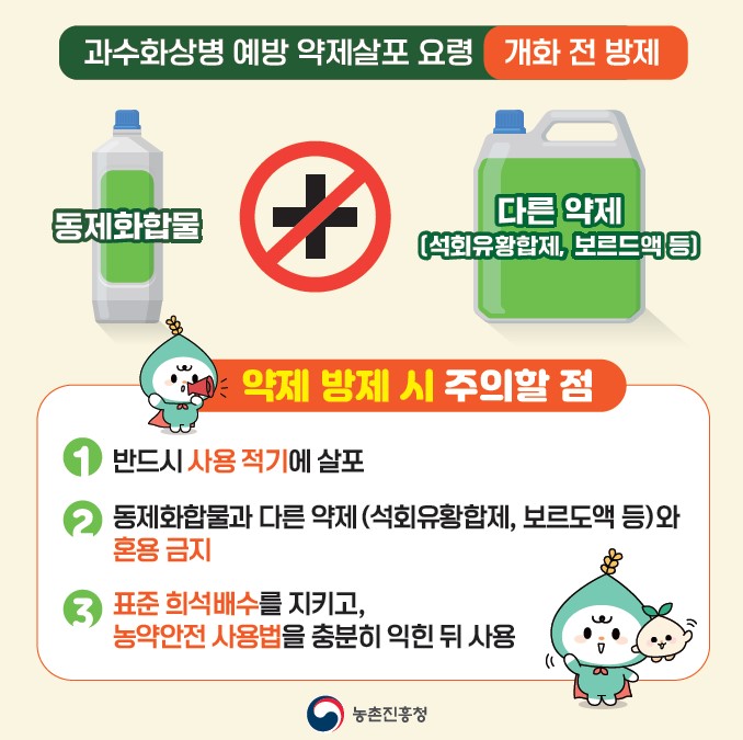 과수 화상병 개화기 전 약제 살포 요령 본문
